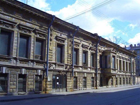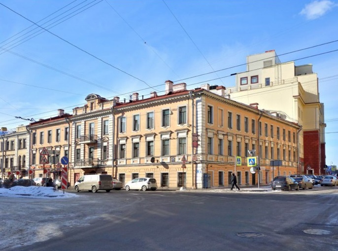 Угол Лиговского проспекта и ул. Растанной. Окна первого этажа занижены, входы без крыльца.