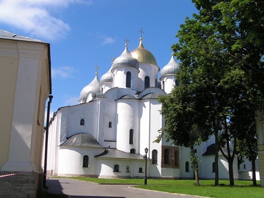 Не наблюдается лишнего грунта в больших количествах и в Великом Новгороде. Вот несколько фотографий старых объектов в кремле Великого Новгорода. По всей территории кремля мы наблюдаем ровный рельеф без всяких следов откопки. При этом не наблюдается там и гигантского «культурного слоя», который должен был бы накопиться, если следовать официальному мифу, а также тому факту, что постройка Софийского собора (2 и 3 фото) датируется 12 веком.