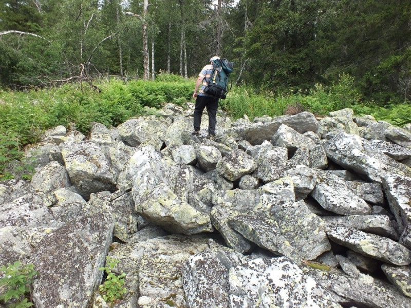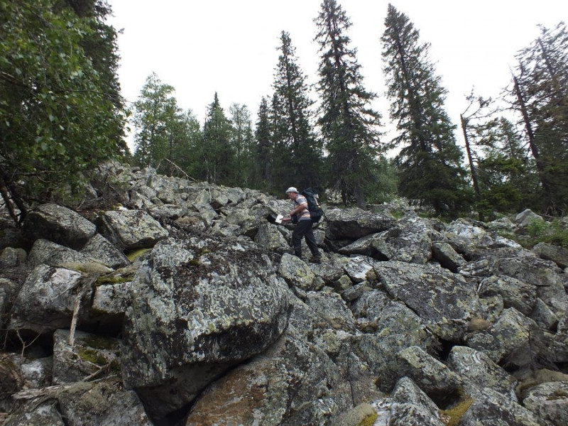 А вот так эти «курумы» выглядят вблизи. Обратите внимание на острые кромки камней, которые не успели сгладиться под действием ветра и воды. Это говорит о том, что наломаны эти камни относительно недавно. Где-то лет 200 или 300 назад, но никак не тысячи или даже сотни тысяч лет, как говорит официальная версия, поскольку утверждается, что Уральские горы являются очень старыми, а потому, якобы, уже давно разрушаются под действием воды и ветра.