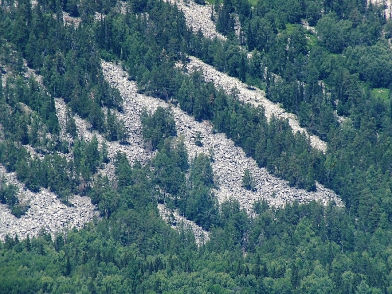 Другими словами, не существует естественных причин, которые могли бы объяснить появление данных «курумов» в таких количествах в этих местах. Ни землетрясения, ни естественная эрозия за счёт ветра, воды и перепадов температруы не могут дать такое количество битого камня подобных размеров, да ещё и так раскидать их по склонам. Тем более, что данный район не является сейсмически активным.