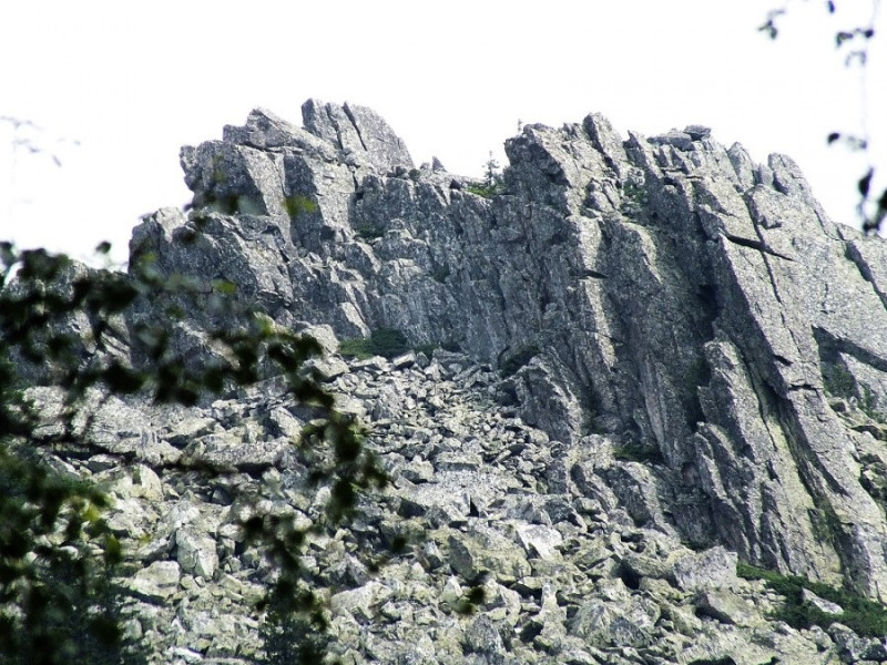 Это ещё одна скала дальше по склону хребта в сторону Большого Шелома, которая выглядит точно так же. Снова скала вся в трещинах, а камни, что рассыпаны вокруг, являются её обломками.