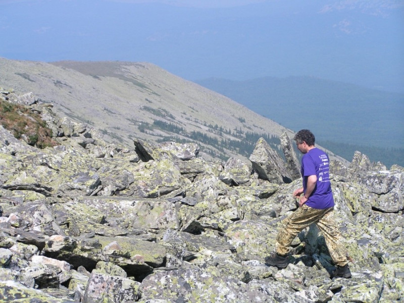 Подобная картина наблюдается не только на хребте Зигальга. В 32 км от горы Большой Шелом находится ещё одна весьма популярная у туристов гора Иремель, являющейся второй по высоте на Южном Урале после Яман-Тау. Сам Иремель и все его склоны сплошь усыпаны курумами, которые выглядят точно так же, как и на Зигальге. Вот так выглядит подъём на Иремель.
