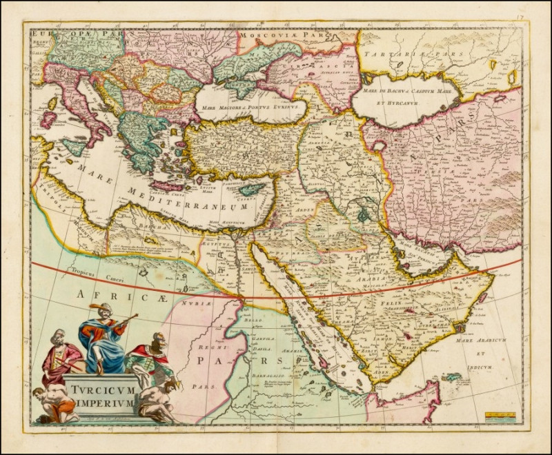 На данной карте конфигурация всех остальных морей и заливов более-менее совпадает с правильными, кроме Каспийского моря. И опять мы видим по правому и южному берегу, реки. Причём река на границе изображена как достаточно крупная.
