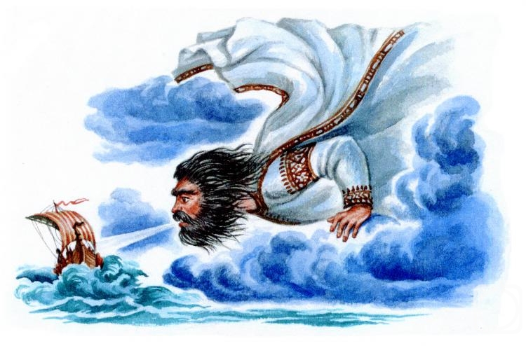 ВНЕШНИЙ ВИД: Посвист имел вид свирепый, волосы и бороду всклокоченные, крылатые распахнутые одеяния. С его бороды лили проливные дожди, из уст исходили туманы. Стоило Посвисту тряхнуть волосами, как на землю валил крупный град. Вместо плаща влачились за ним ветры, а с полы его одежды валил хлопьями снег.