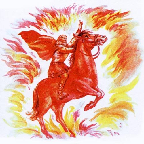 РОДОСЛОВНАЯ: Согласно преданиям, после того, как Сварог ударил магическим молотом о камень Алатырь, высеклись искры, из разгоревшегося пламени которых предстал огненный бог Семаргл. В день Осеннего равноденствия Семаргл откликается на зов Купальницы, призывающей на любовные игры. А спустя девять месяцев, в день Летнего солнцестояния, у богов рождаются дети – Кострома и Купало.