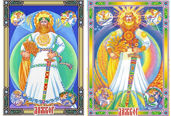 ДАЖЬБОГ (или ДАЖДЬБОГ или Тарх) — один из самых древнейших богов славянских, он бог Всего Мира, он — солнечный бог, он еще и носитель света солнечного. ИМЯ: «Дающий бог», бог, создающий главные условия для жизни на нашей Земле (т.е. он есть бога, «посылающий нам благо»); он — податель влаги небесной и урожая нашего; он — бог, «дающий саму Жизнь» природе.