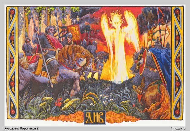 ДИВ (Дый) -Бог ночного Неба и богатства, он же птица-Див. Облик Дива никто не мог удержать в памяти, разные люди даже видели его по-разному! Сходятся отзывы о нем в одном: это вихрь-человек, сверкающий, точно молния.