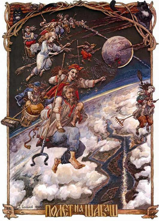 Для того, чтобы в их деятельности был известный порядок, ведьмы время от времени собираются на совещание под председательством ведьмака. Эти собрания, очевидно, и есть не что иное, как шабаши. Рассказывают, что ведьмы на своих собраниях предаются игрищу, напоминающему бой мечами, и потому, отправляясь на шабаш, они захватывают с собой грабли, ухваты, конопляные мялки. Этими предметами они и дерутся между собой.