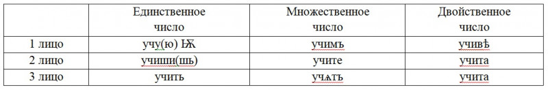 Заметьте, в 3 лице, множественного числа стоит непривычная для вас буквица. Окончания или (атъ), или (ять). «Они учатъ».