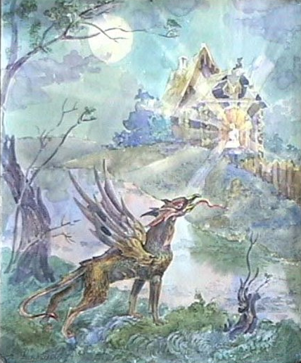 Скимен-зверь русских былин. (А. Н. Фанталов, акварель и тушь)