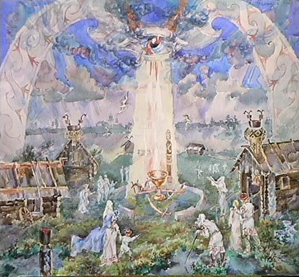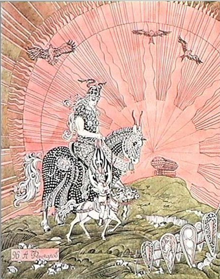 Даждьбог и Златыгорка. (А.Н. Фанталов, акварель).