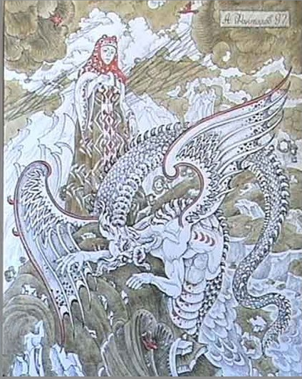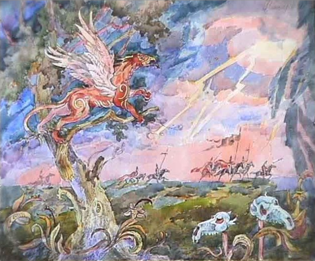 Велес и Усыня. (А. Н. Фанталов, акварель).