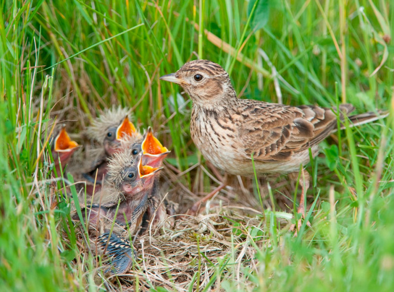 Жаворонки считаются достаточно заботливыми, ответственными и бесстрашными родителями. В основном это касается полевых жаворонков, обитающих на территории Европы. Самка не встанет с кладки яиц, если рядом окажется человек.