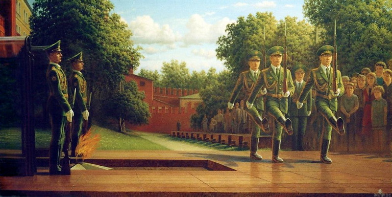 Его картина «Смена почетного караула у могилы Неизвестного солдата» хранится в постоянной экспозиции, представленной клубом Президентского Полка в Арсенале Московского Кремля. Его многочисленные иллюстрации украшают самые всевозможные художественные издания: книги; журналы; газеты.