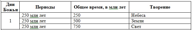 Значит что – день Бога разделяется на три периода. Видите? (прим. по 250 млн лет).