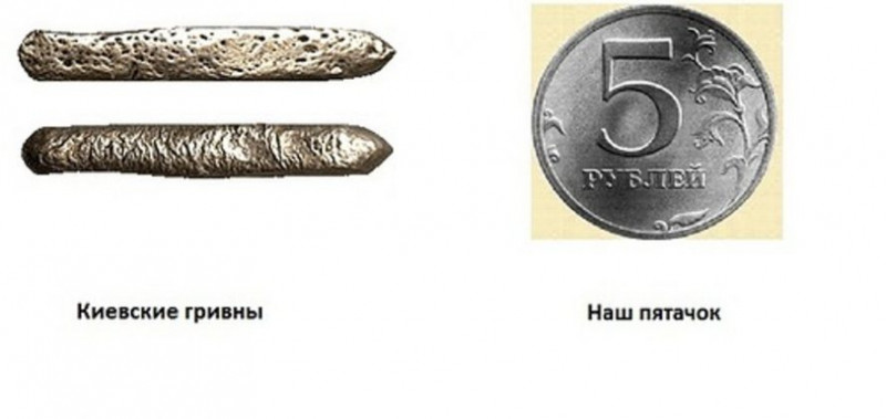 - Прутки из серебра, реже из золота, потому как дорогое. Как считать их номинал? Условно, так же как мы совсем недавно определяли стоимость товаров в международных расчётах в виртуальной единице ЭКЮ. В гривне — 25 кун (от стоимости одной шкурки куницы)
