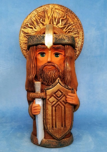ЛЕГЕНДА: Говорится, что войско Велесова, войско защитников нашего мира разделилось. Одна часть этого войска осталась на небе, а другая спустилась на землю, чтобы помогать всему живому и защищать от разных бед. Одним из тех, кто спустился с неба стал и Бог Чур. После того, как Сварог закончил создавать землю, он наказал своему внуку разделить эту землю между людьми. Когда Чур явился перед ними, те начали кричать, «Чур, мое, Чур, мне!». Так и повелось, — люди продолжают выкрикивать эти фразы до сих пор, — особенно дети. После того, как Чур раздал наделы земли, он приказал людям выстрогать из деревьев бревна, которые бы обозначали границы этих земельных участков. Никто не смел присваивать чужую собственность и передвигать эти бревна, которые со временем стали называть Чурами, или Чурками. Позднее из этих бревен стали вырезать самого Бога Чура и свои семейные знаки, чтобы напомнить всем, кто является истинным охранником и владельцем земли.
