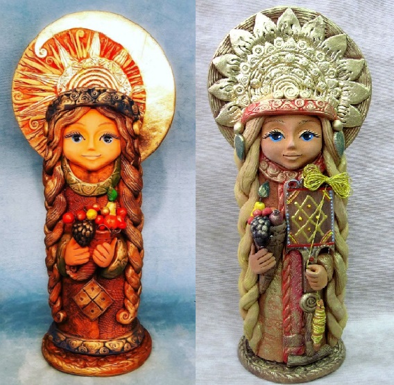ДЕЯТЕЛЬНОСТЬ: Не покладая рук, прядет она. И на ее священном веретене — пряжа судеб человеческих, а ее главные помощницы – богини Доля и Недоля (в западных областях их еще называют Среча и Несреча) – связывают покутными нитями судьбу человека с делами его, воздавая каждому за все содеянное. Возле правой руки сидит Доля, и нити у нее полновесные, с яркими вкраплениями. А слева от Макоши прядет Недоля, и нити ее блеклые, тонкие, готовые вот-вот оборваться. Каждую весну Макошь приходит к людям, отпирает Землю, а каждую осень – в облике Матушки-Осенины, Хозяйки Урожая – уходит обратно на Небо, чтобы вновь вернуться лишь будущей весной…