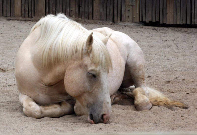 Сон у коней длится почти половину суток. Они могут заснуть как в стоячем положении, так и лежа на боку. Дикие лошади предпочитают именно первый вариант. В случае нападения диких животных, они смогут быстро проснуться и дать нападающим отпор. Домашние лошади, живущие в специально обустроенной конюшне, напротив, не заботятся о своей безопасности во время сна и отдыхают лежа. Маленькие жеребцы предпочитают спать, лежа на земле. Взрослые организовывают постоянный караул в целях безопасности. Обычно в многочисленных стадах несколько лошадей остаются охранять спящих собратьев.