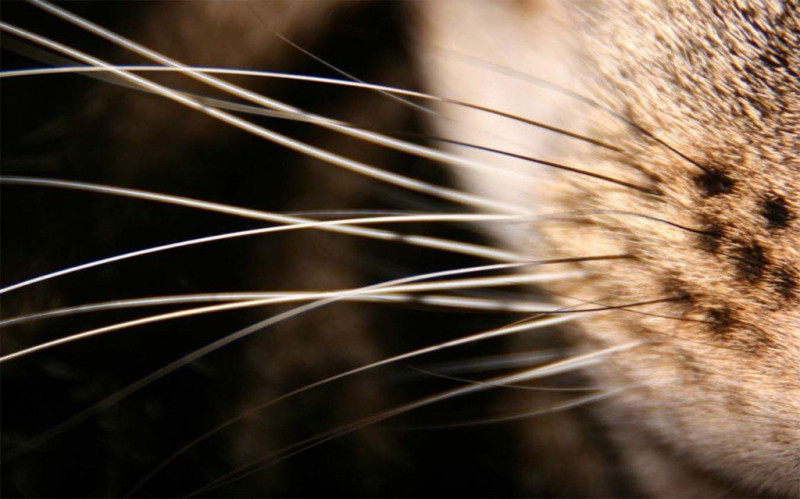 За осязание отвечают особые волоски – вибриссы. Они располагаются над верхней губой, под подбородком, над глазами, присутствуют на хвосте, конечностях, между пальцев, в ушах и возле них. Удаление вибрисс у кошки обозначает потерю настоящего «прибора» по навигации и ориентации в пространстве.
