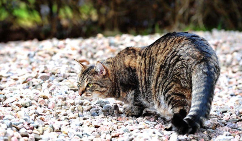 У кошки имеется отчетливое понимание «своей» территории. Если речь идет о сельской местности, то одна особь может контролировать весь участок. При этом все враги, которые осмелились ступить на занятую территорию, будут решительно изгнаны. Таким поведением отличаются как самцы, так и самки. Бывают и нейтральные участки, на которых кошки не проявляют агрессию по отношению друг к другу. В процессе охоты хищник подстерегает свою мишень в засаде, а в подходящий момент совершает резкий прыжок. Пойманная добыча съедается сразу, если животное чувствует голод. Если нет, то кошка может некоторое время поиграть с ней: подбрасывать и ловить, отпускать и снова догонять.