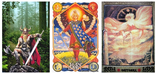 Великий Триглав Мира Слави — Бог Ингл, Бог Траян иБог Волх, которые дают людям Великой Расы ДуховноеПознание иСаморазвитие (Бог Ингл); Созидание и Изобретательность (Бог Траян); Мужество и Самопожертвование воСлаву Рода своего (БогВолх).
