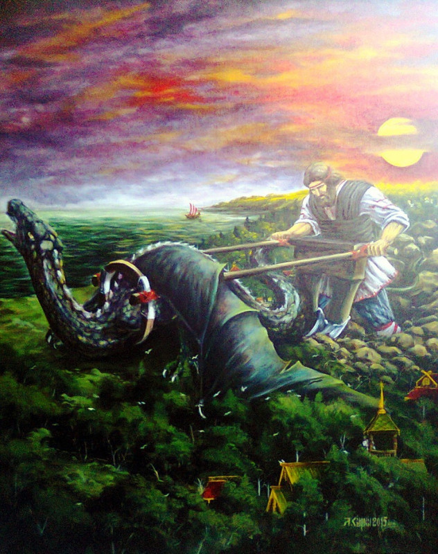 По словам Александра Михайловича, один из его любимых мифических персонажей — Водяной, образу которого свойственна особая уникальность. К сожалению, в мультфильмах и в книжных иллюстрациях его традиционно изображают слишком похожим на рыбу — с блестящей чешуёй, с сомовьими усами, выпученными глазами и рыбьим хвостом. Разумеется, некоторые «водные» внешние качества у Водяного присутствуют, поскольку его символической рыбой считается сом: подобно сому, Водяной — фигура очень крупная, даже тучная, обладает выдающейся физической силой, любит спокойно полежать под корягой на дне или на солнечной отмели. Но при этом он всё-таки бог — повелитель рек, озёр и прудов, пусть даже и низшего уровня. Именно поэтому Водяной не может быть столь уродливым, как принято его показывать. Ведь если верить древнеславянской мифологии, славяне произошли от их богов, то есть созданы по божественному образу и подобию. Таким образом, у Водяного не может быть чрезмерной рыбьей атрибутики, его внешность, по большей части, должна соответствовать привычному человечьему облику.