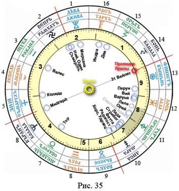 Теперь берем следующую Землю – Мерцану. У нее период обращения – 225 суток, т.е. весь Сварожий круг (рис 46):