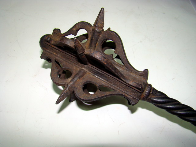 1. Рукоять изначально отковывалась отдельно, по крайней мере, очень на это похоже. 2. Голова ковалась целиком из единого куска. Те экспонаты, что находятся в музеях, не имеют видимых признаков сборки, этот факт отмечают многие эксперты. 3. Голова и рукоять сваривались, плюс приваривалась небольшая кольцевая гарда — защита для рук.
