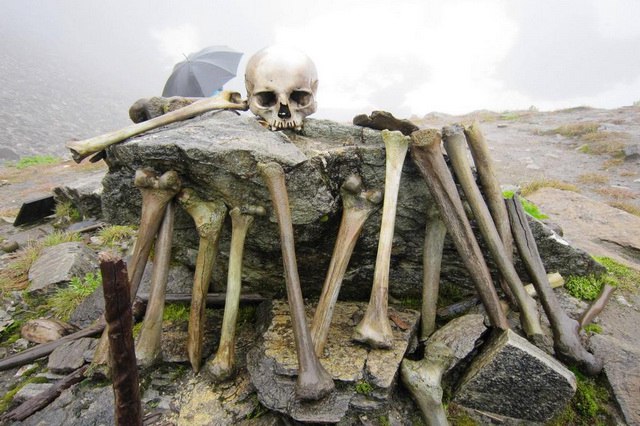 Одно из самых загадочных мест на земле — ледяное озеро Роопкунд, расположенное в индийском штате Уттаракханд. Оно лежит в горной системе Гималаев, на высоте 5029 метров над уровнем моря на территории заповедника Нанда-Деви. От ближайшего населённого пункта до этого места приходится проделать путь продолжительностью в четыре дня. Несмотря на это, Роопкунд всегда был и остается местом паломничества ученых и экспертов. Все дело в том, что ледяное озеро является огромной могилой, где на протяжении столетий хранятся останки более 500 человек.