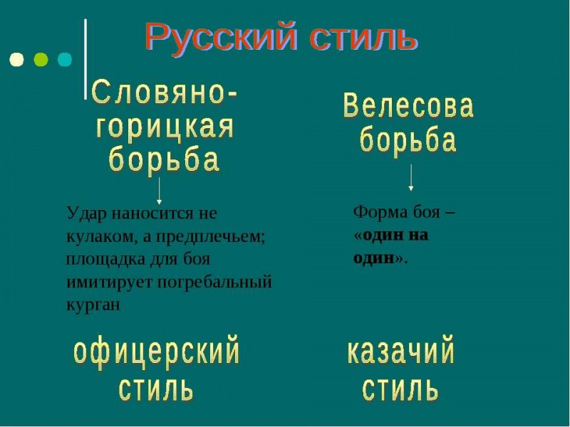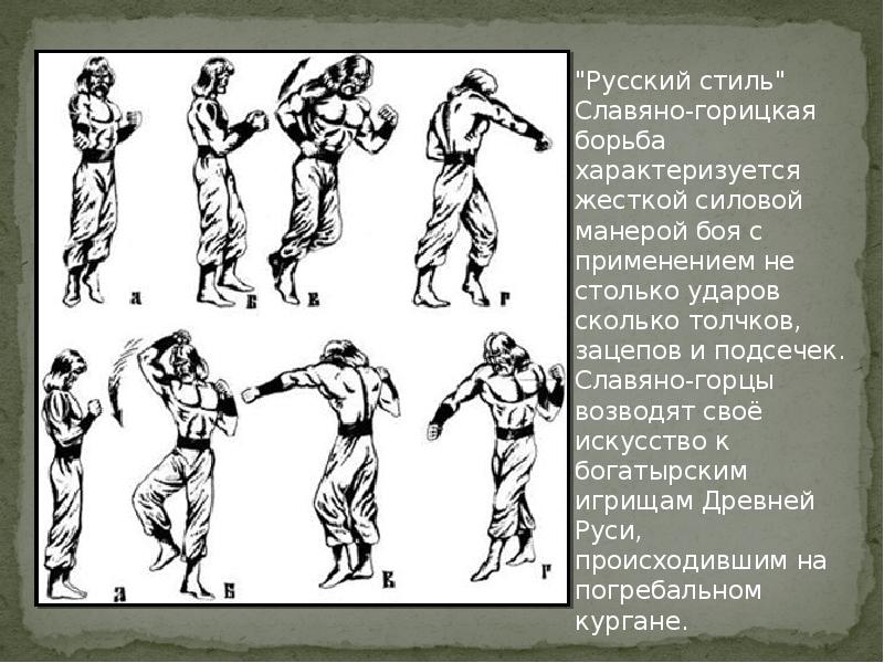 Как и в восточных единоборствах в славяно-горицкой борьбе существовала и своя