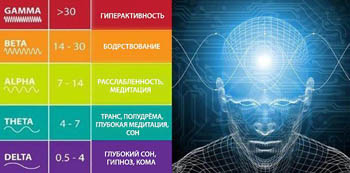 дельта-состоянии волны мозга замедляются до 0-4 колебаний в секунду. Также это